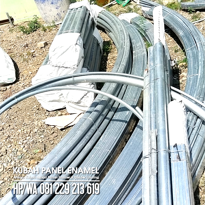 Jasa pembuatan dan pemasangan kubah rangka besi dengan atap Black Steel dan Galvalume panel ornamen serta kubah yang berbahan Stainless Steel. Produk kubah kami cocok untuk kubah baru maupun kubah beton yang ingin dilapis dengan atap Black Steel Enamel atau juga Galvalume Powder Coating. Penutup atap terbuat dari bahan plat Galvalume dengan tebal 0,5mm dan Finishing Powder Coating yang di Oven dengan suhu 220 Derajat Celcius. Kubah juga dapat dipesan dengan menggunakan bahan Black Steel dengan tebal 0.7mm-1mm dan Finishing Enamel yang di Oven dengan Suhu 880 Derajat Celcius. Bahan tersebut tampak indah dan benar-benar awet dengan warna khusus eksterior yang mudah dibersihkan (self washing) oleh air hujan saja, sehingga kubah akan selalu tampak bersih dan indah.